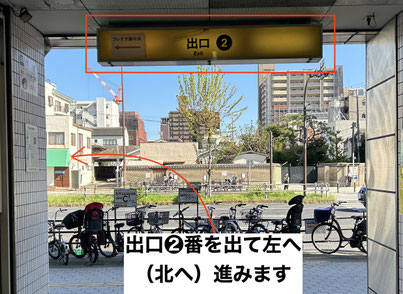 ❷番出口を出て谷町筋に沿って左へ(北へ)進みます